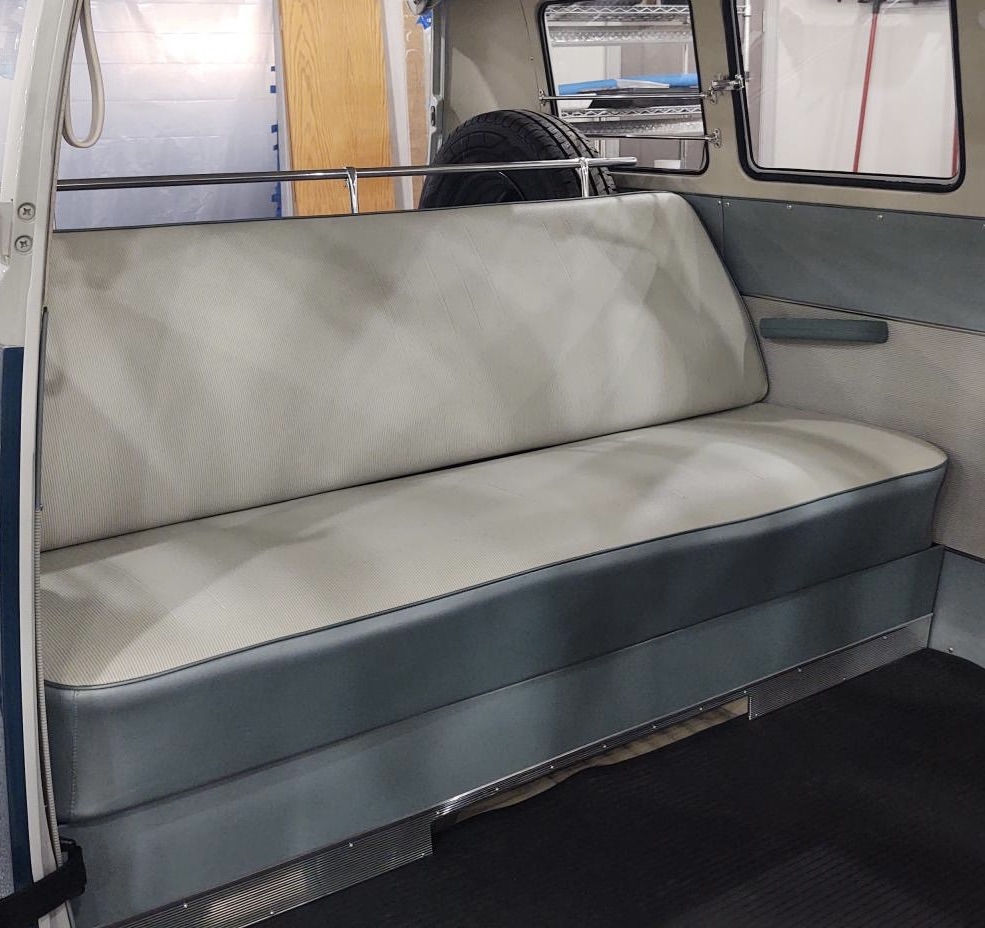 Here are some new high quality Aero Papyrus rear seat covers. These are correct for 1966-67 deluxe Sea Blue & Blue White Bus but will fit any 1958-67 Bus.